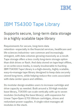This datasheet shares detailed information about the IBM TS4300 Tape Library. It is a high-density, highly scalable, easy-to-manage tape library designed to keep data securely stored long-term, while helping reduce the costs associated with data center space and utilities.